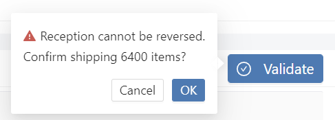 A confirm pop-up is displayed when clicking Validate button, warning the user that the action of receiving is not reversible: