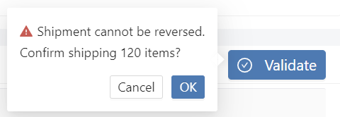 A confirm pop-up is displayed when clicking Validate button, warning the user that the action of shipment is not reversible: